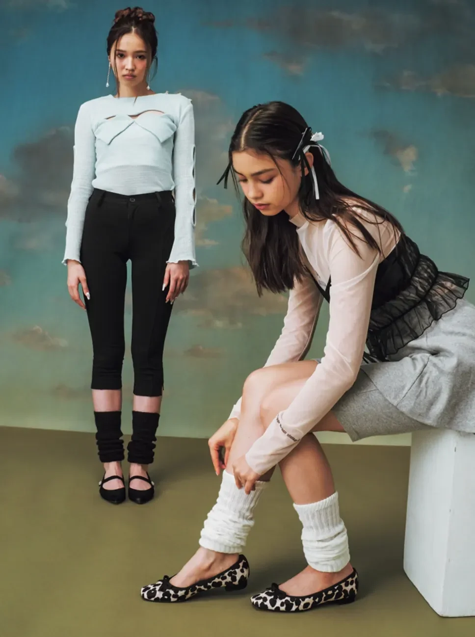 Visually, balletcore translates traditional studio elements into everyday clothing. Leotards become bodysuits. Warm-up wraps turn into cardigans. Tulle skirts leave the rehearsal room and show up at brunch. It’s a studio-to-street aesthetic, where dancer staples are reinterpreted for real life—coffee runs, workdays, errands, and dates.